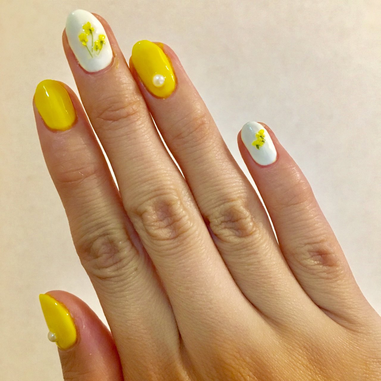 セルフジェルネイルデザイン 簡単可愛い春ネイル 押し花とスタッズのせ Aiamsterdam